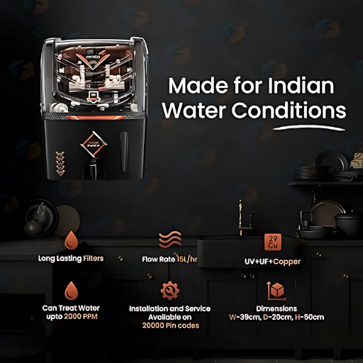 • RO + UV + UF + TDS Adjuster Technology: Multi-stage filtration that removes heavy metals, chemicals, bacteria, and viruses.