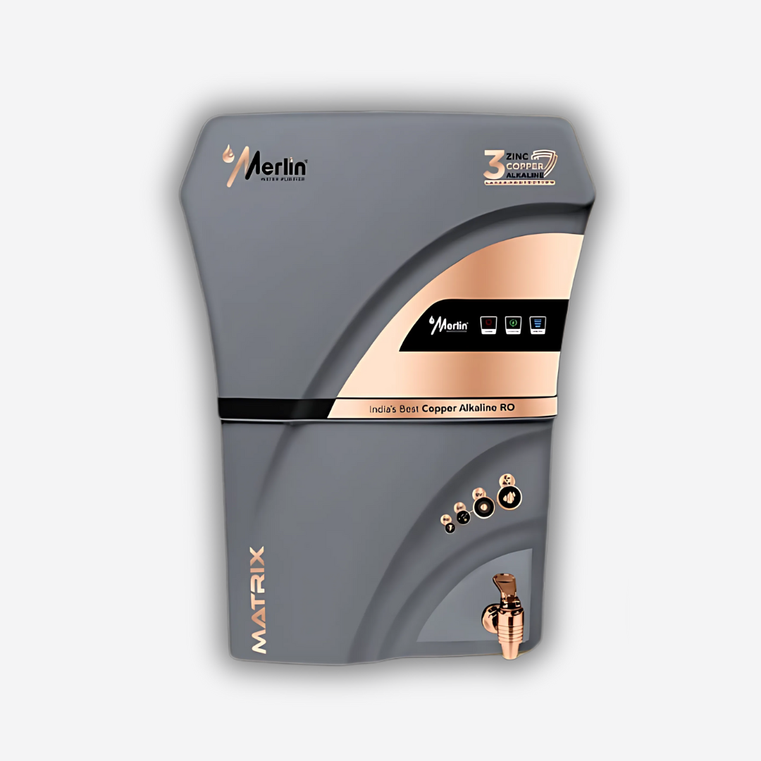 The Merlin Matrix Ro Water Purifier is a cutting-edge purification system designed to provide safe, clean, and healthy drinking water for your home and office. Featuring multi-stage filtration technology, it effectively removes impurities, bacteria, viruses, and heavy metals, ensuring every sip is fresh and pure.